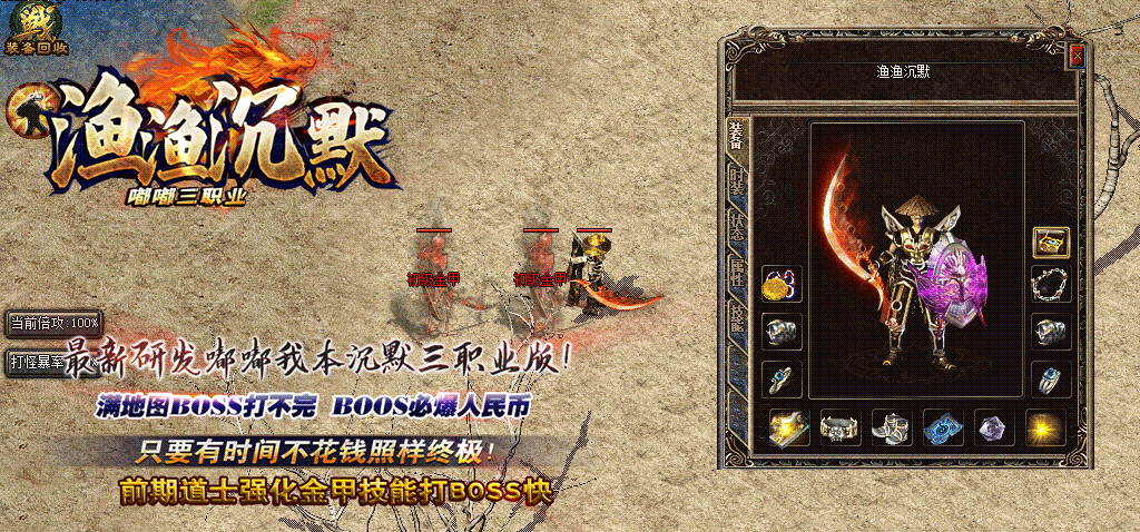 全新技能强化系统★道士召唤金甲强化后后超强,可以带两个金甲★前期建议玩道士★打大小魔王超快★